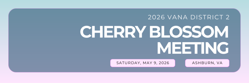 Please join us for the Annual VANA District 2 Cherry Blossom Meeting on Saturday, May 9, 2026.